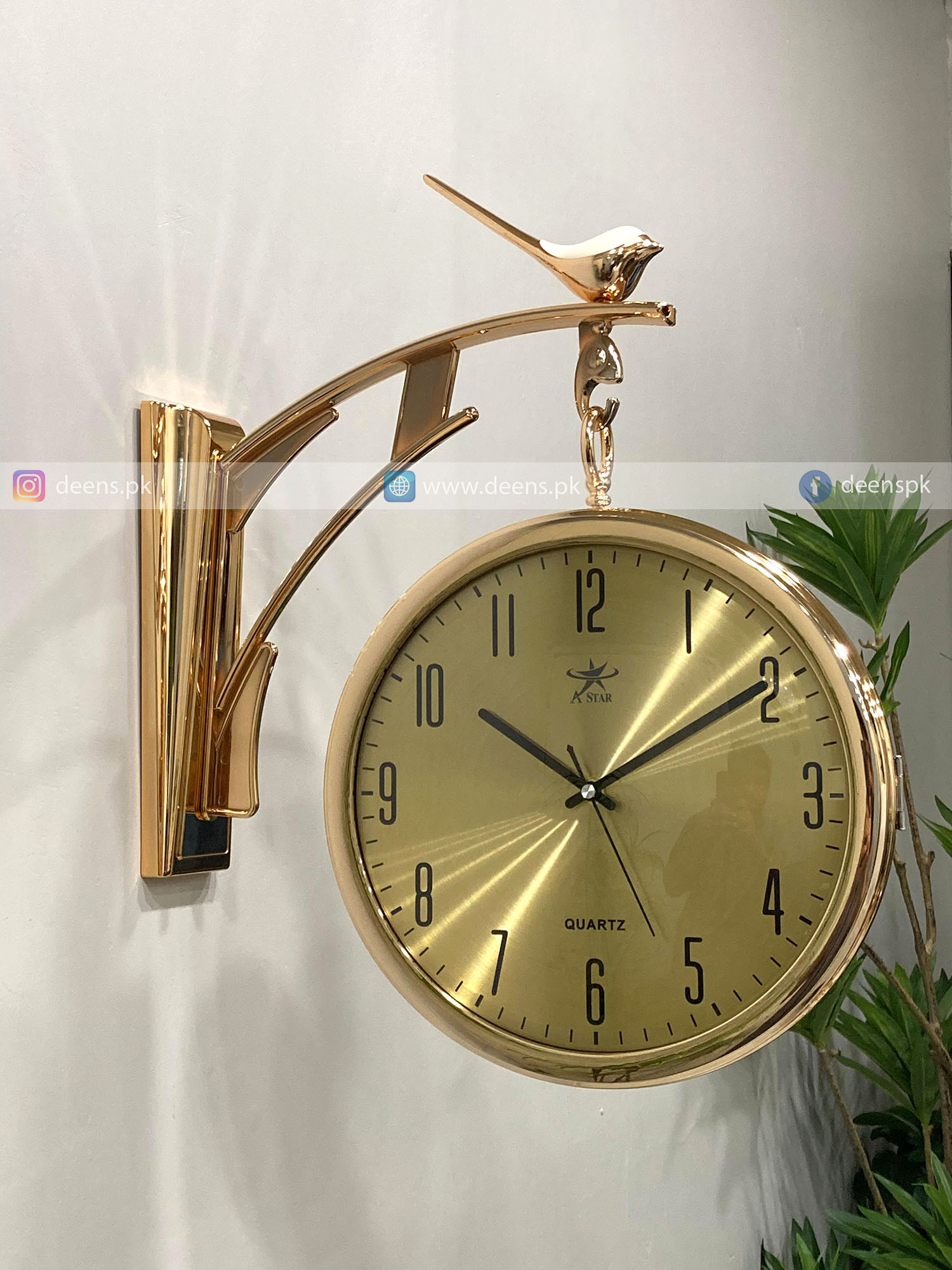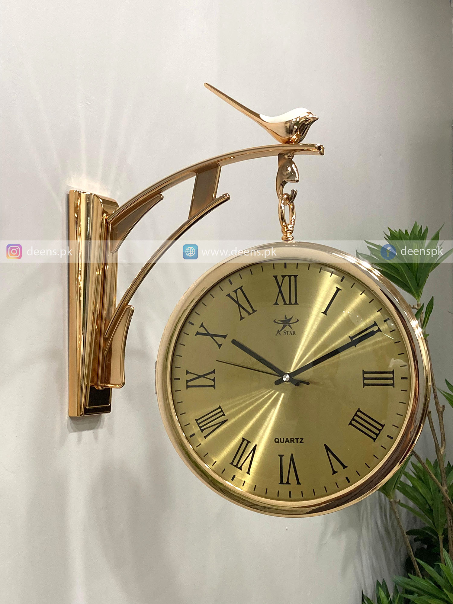 The Double Face Clock is a stylish and functional timepiece designed to display the time on both sides. Perfect for hallways, corridors, shops, or open spaces, it allows people to view the time from multiple directions. Crafted with a durable metal or stainless-steel frame, it features two clear, easy-to-read dials. Available in both vintage and modern designs, this clock not only keeps accurate time but also adds a unique decorative touch to any interior.
