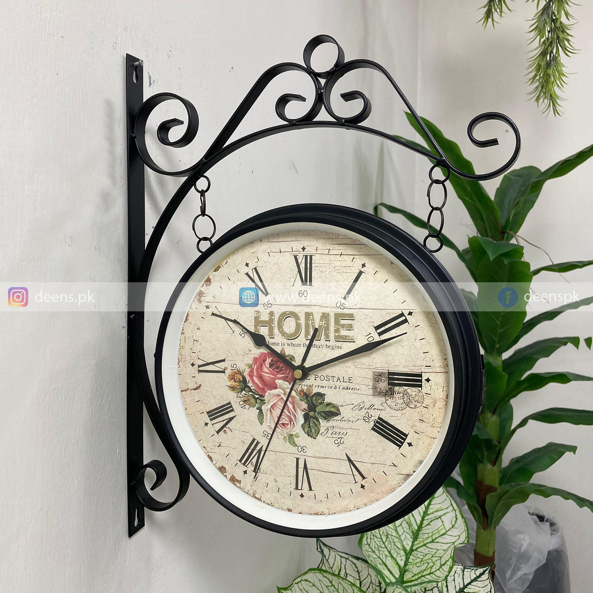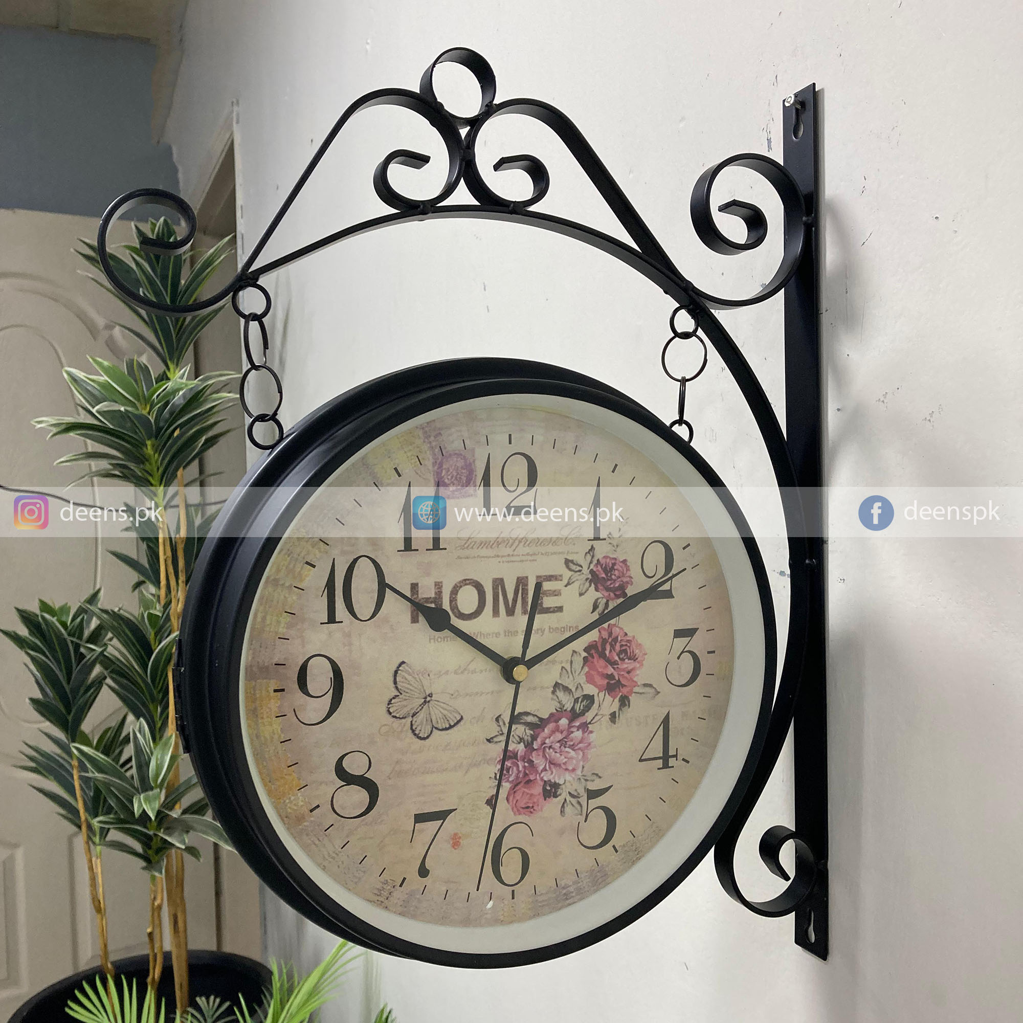 This elegant double-sided clock is a perfect blend of functionality and style. With its unique design, it provides clear time visibility from both sides, making it an ideal choice for large spaces like living rooms, hallways, or even offices. Whether you’re decorating a modern home or a classic space, this clock adds a touch of charm and sophistication.