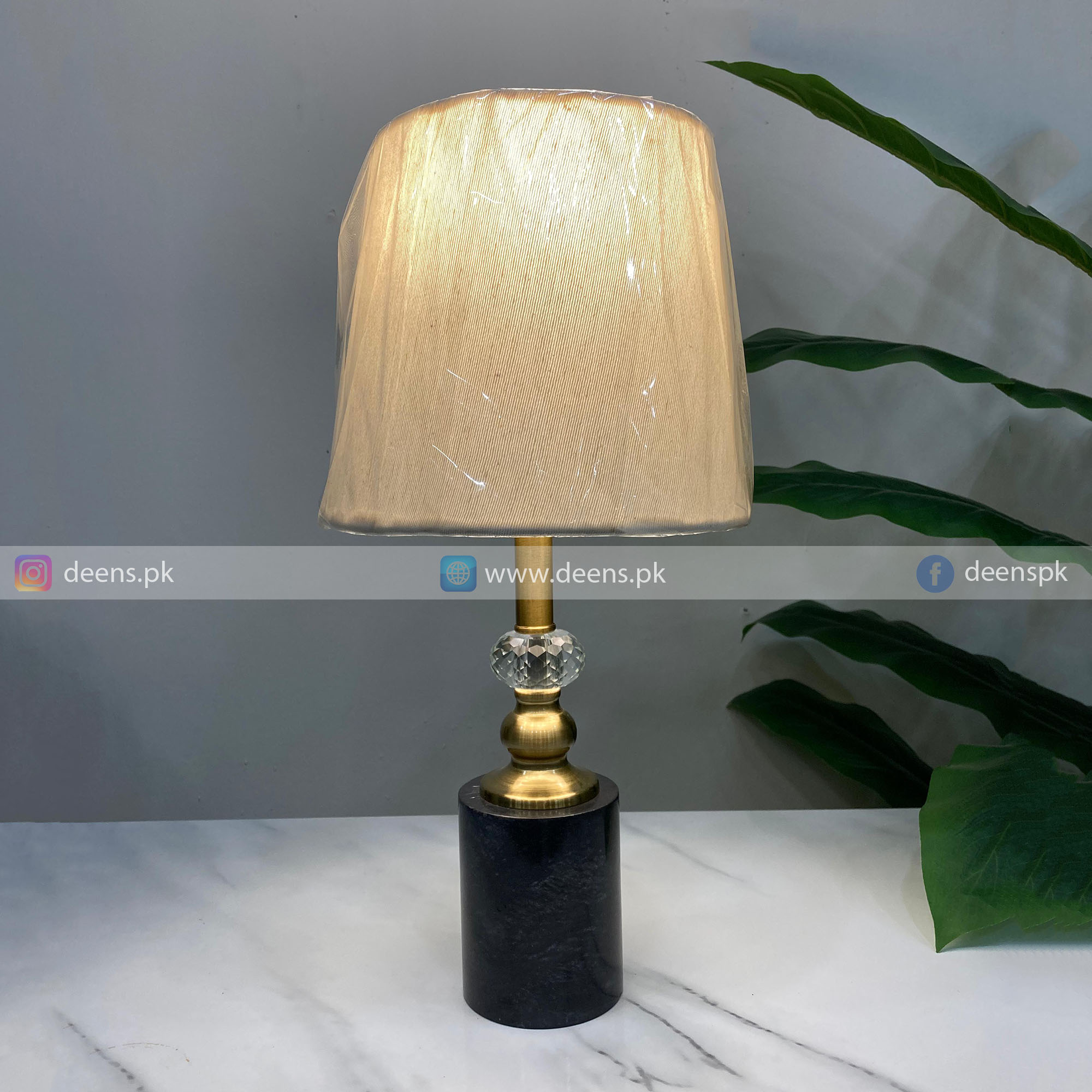 This table lamp is made of brass-colored metal, which gives it an elegant and sophisticated appearance. The base and stand have a durable and shiny brass finish, adding a stylish touch to your room. The lamp shade is white, producing soft and warm light. The combination of the brass metal and white shade creates a perfect balance between vintage and modern design. The lamp has a simple yet chic design, making it a great fit for any room, study table, or bedside table, and it helps create a classy ambiance.