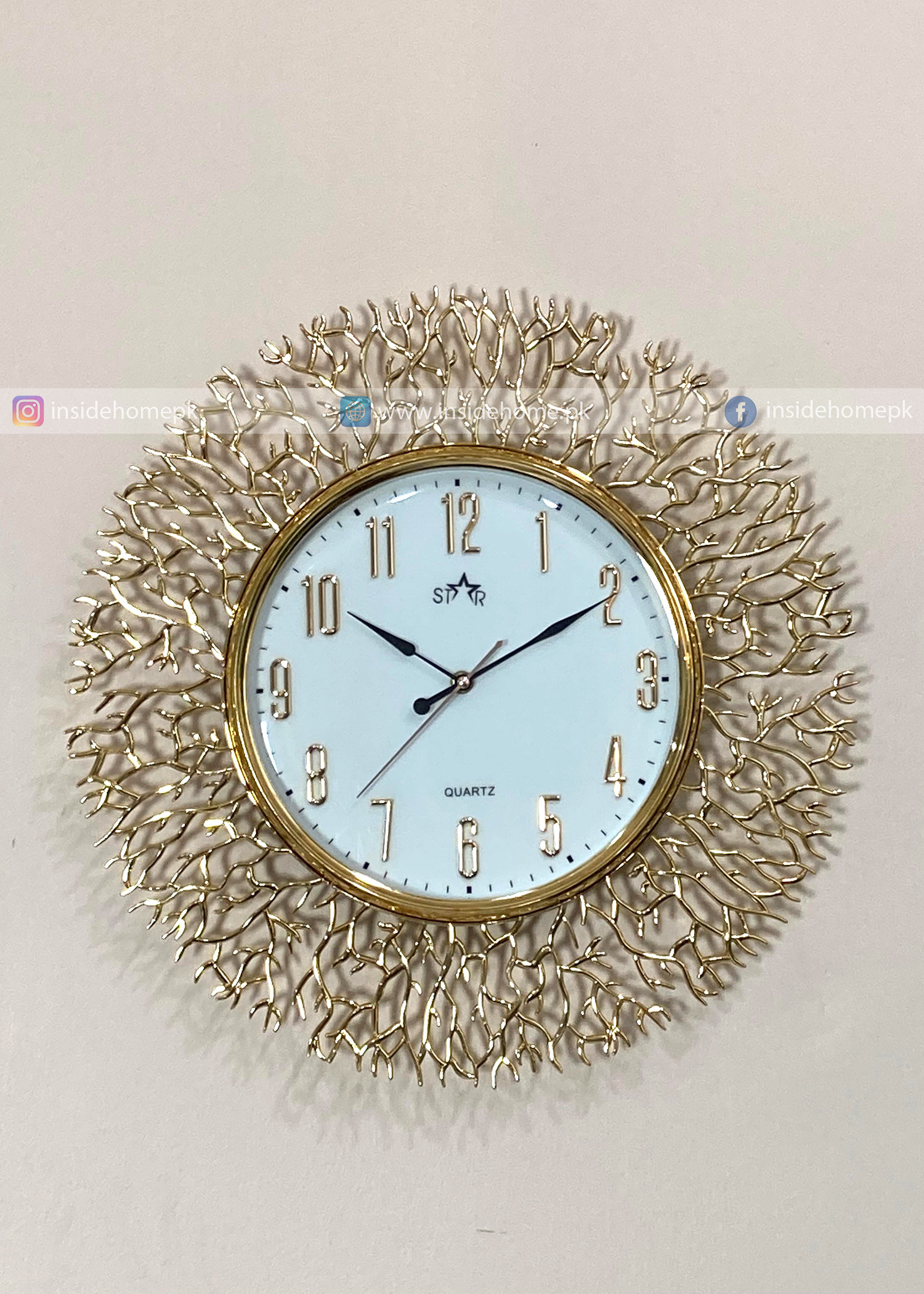 Elevate your interior with this Golden Wall Clock featuring a White Dial. The luxurious golden frame adds a royal and elegant touch, while the clean white dial enhances its classy and timeless appeal. Perfect for any room, this clock beautifully combines sophistication with simplicity — making it an ideal piece for modern as well as traditional décor settings.